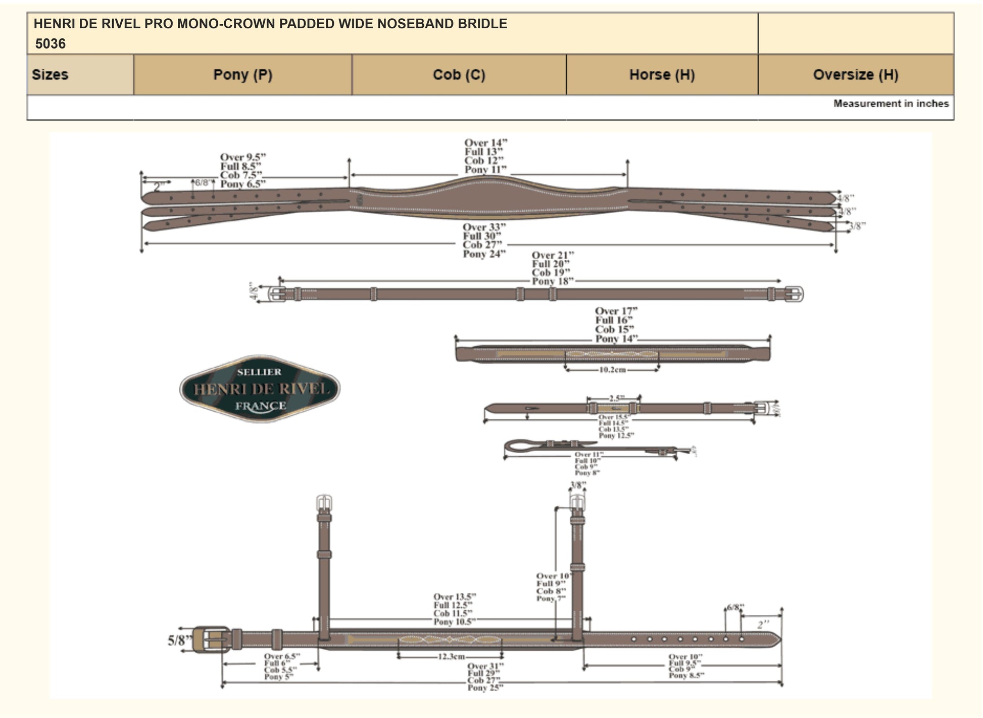 Henri de Rivel Pro Mono-Crown Padded Wide Noseband Bridle
