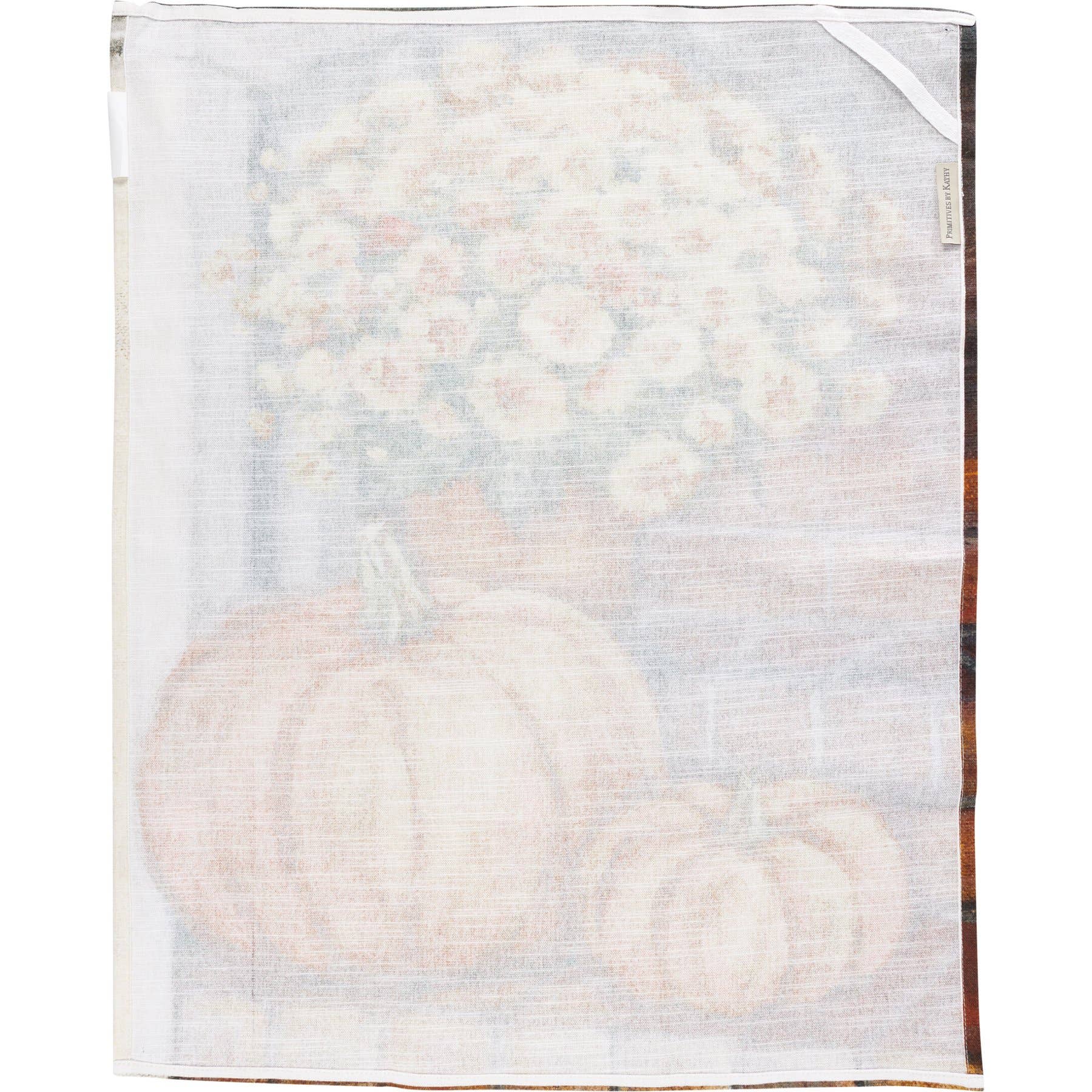 A cotton kitchen towel from our Fall & Harvest Collection featuring an all-over design displaying potted fall flowers and pumpkins on porch steps. Design is replicated from original artwork painted onto burlap canvas, giving the art a unique depth and texture. Towel features cotton tape loop for easy hanging. Our Porch Steps And Flowers kitchen towel comes rolled and wrapped with cotton tape including hangtag displaying full design. Machine-washable for convenient cleaning. A charming and functional seasonal kitchen accent.