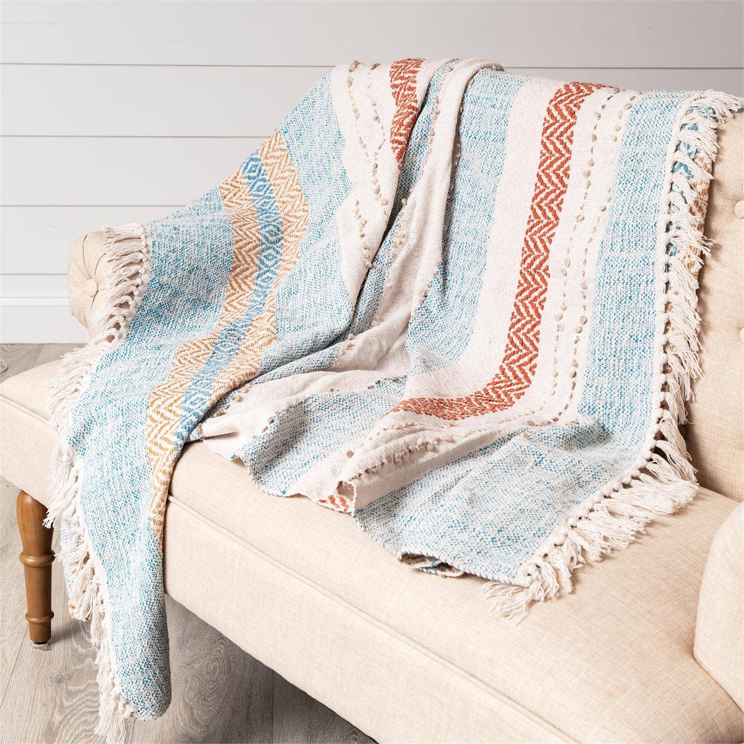 Crafted from a blend of cotton and polyester, this throw measures 50 inches wide by 60 inches long.